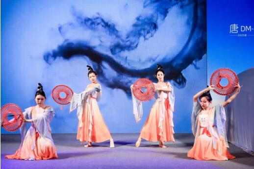 传承盛唐豪迈,彰显文化自信。在舞者华丽翩跹的舞姿中,2025款唐DM-i在众人期待中缓缓亮相,成为全场绝对的焦点。独具中国文化内涵与东方豪华韵味的未央灰新车色,大气而不失优雅的外观设计,车身线条流畅而富有张力,黑化前脸的大尺寸多边形进气格栅内嵌“龙鳞”风格元素,搭配黑化运动套件和全新运动轮毂,展现出强烈的视觉冲击力。